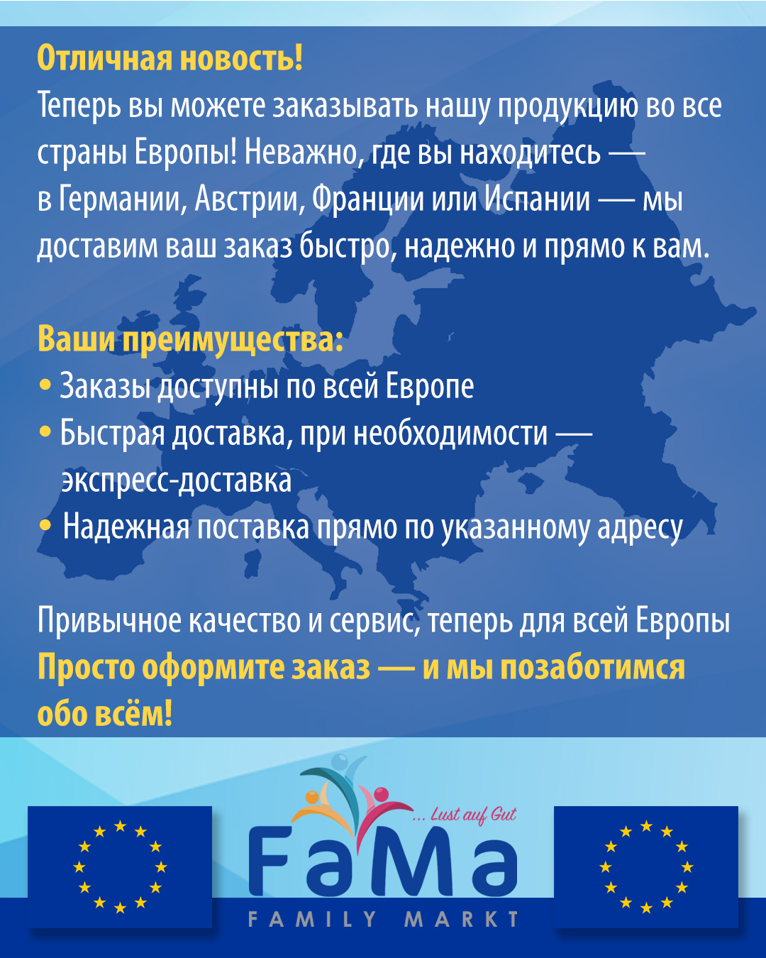 Family Markt - Ihr Onlineshop für Lebensmittel, Feinkost und Spezialitäten aus Osteuropa und der Welt. Entdecken Sie frische Produkte, hausgemachte Klassiker und saisonale Angebote – direkt zu Ihnen nach Hause geliefert. Qualität, Geschmack und Service stehen bei uns an erster Stelle.