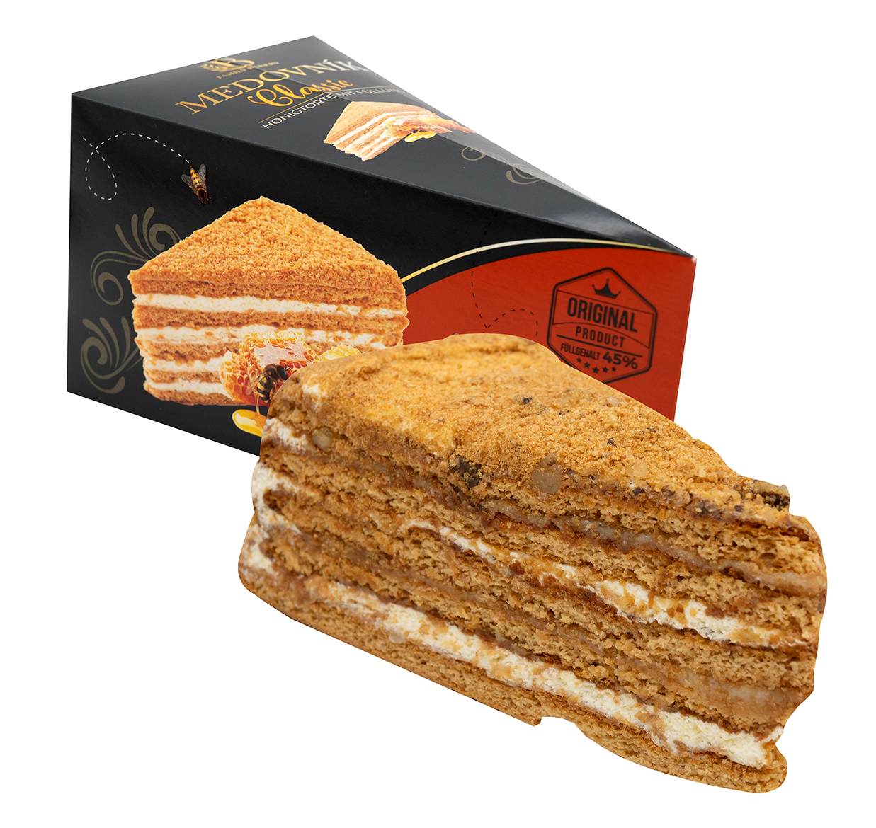 Produktinformationen "130g Medovnik Altböhmische Honigtortenschnitte - Medovik Classic mit Nüssen und Honig -18°C tk // Ст"