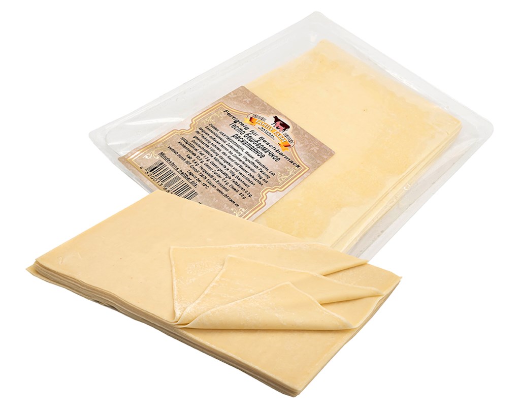 - Family Farm Teigblätter für Beschbarmack 500g Zutaten: Hartweizenmehl, Wasser, Maisstärke, Salz, Sonnenblumenöl. Zubereitung: Ungeöffnete Packung langsam auftauen lassen bis Zimmertemperatur. Hergestellt in Russland. Durchschn. Nährwerte je 100g: Brennwert 1055 kj/252 kcal, Fett 1,3 g, davon gesättigte Fettsäuren 0,3 g; Kohlenhydrate 52 g, davon Zucker 0,4 g, Eiweiß 8 g, Salz 0,4 g.
