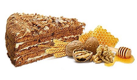 Zutaten: Weizenmehl, gezuckerte Kondensmilch (Milch, Zucker), Zucker, saure Sahne (Milch, Milchsäure-Kulturen), Mischstreichfett 73% Fett (Palmöl, Rapsöl, Sheafett, Kokosöl, Milchfett, Sauermilcherzeugnis, Emulgator: Mono- und Diglyceride von Speisefettsäuren, Farbstoff: Carotin), Vollei, Margarine (Palm-, Raps- und Sonnenblumenöl in veränderlichen Gewichtsanteilen, Wasser, Emulgatoren: Sonnenblumenlecithine, Mono-und Diglyceride von Speisefettsäuren: Süßmolkenpulver, Speisesalz, Aromen, Säuerungsmittel: Citronensaure, Farbstoff: Carotin), Honig (4,2%), Walnüsse (2,9%), Backtriebmittel: Natriumcarbonate.